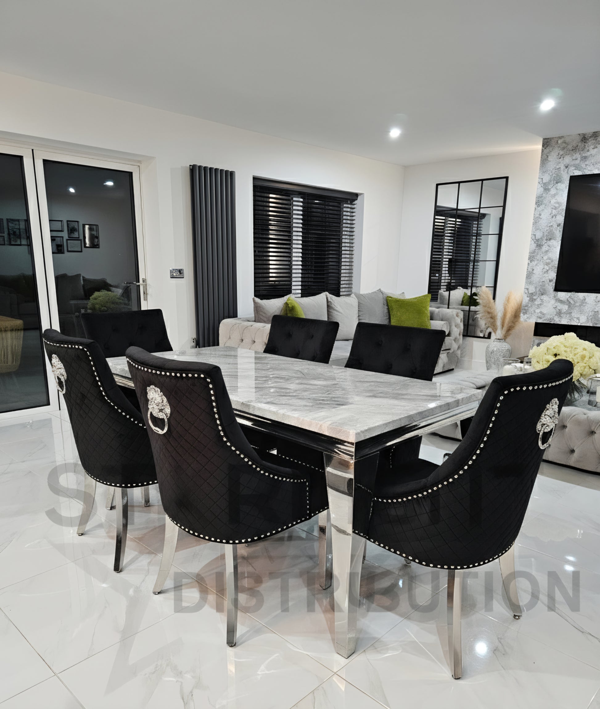 Trafalgar Marble Dining Table Set With Lion Head Knockerback Chairs